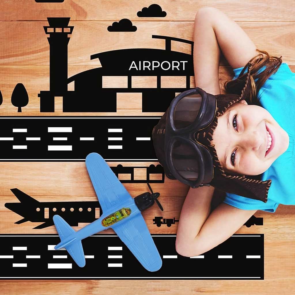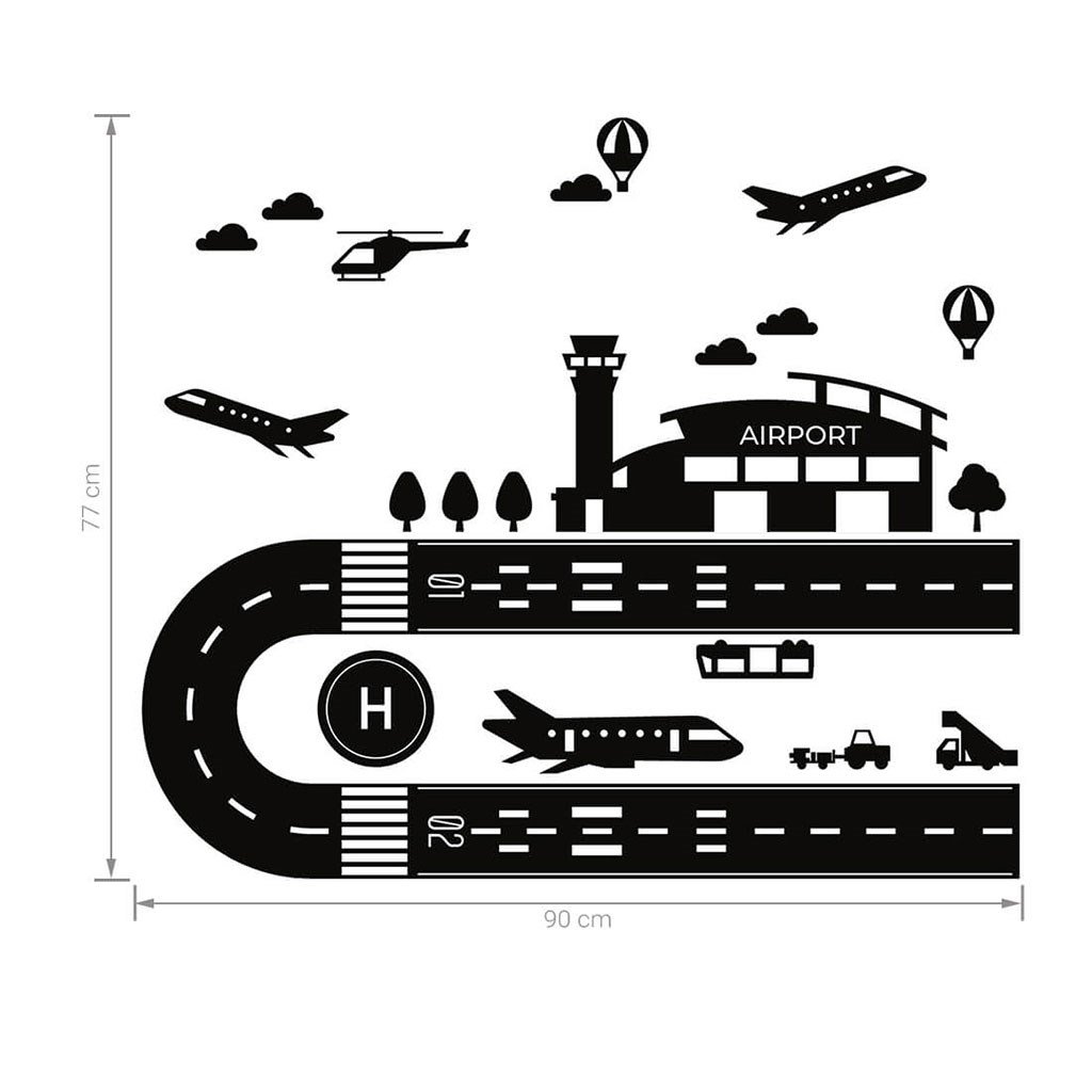 Krásná nálepka na podlahu Letiště. Letištní podlahový ticker byl vytvořen pro fanoušky nebeských dobrodružství. Vždyť kdo v našem dětství nechtěl být pilotem :). Pomáháme plnit tyto sny a zároveň zaručujeme nadpozemskou zábavu, aniž bychom zabírali zbytečné místo v dětském pokoji. Náš produkt je jedinečný a jediný svého druhu. Vyrobeno ze speciální fólie a matného laminátu, díky kterému je jeho povrch odolný a nesmazatelný. Samolepka je vhodná na podlahu, ale lze ji aplikovat i na jakýkoli jiný hladký povrch, jako jsou stěny nebo nábytek. Nečekejte déle. Dopřejte svému dítěti mimořádnou zábavu a zkraťte si čas na úklid. Tato sada obsahuje: letiště (90x77 cm) a doplňkové prvky. Přesné rozměry jsou uvedeny na poslední fotce.- rozměry: zobrazeno na poslední fotce
