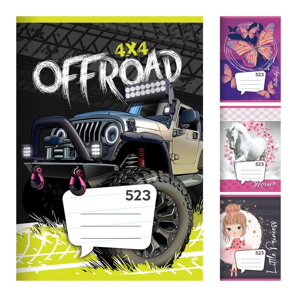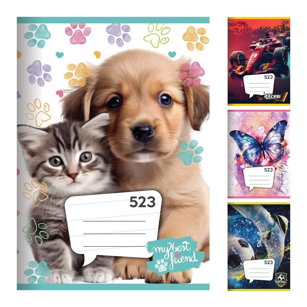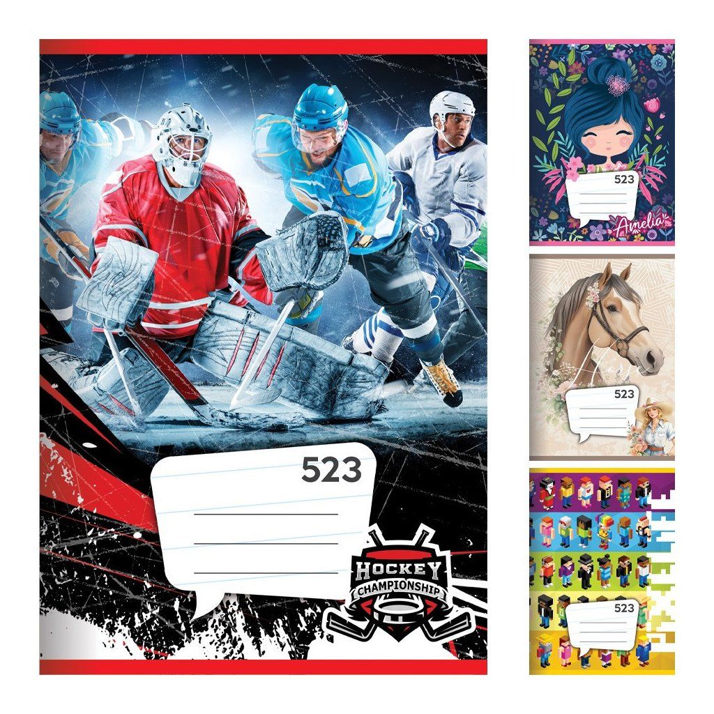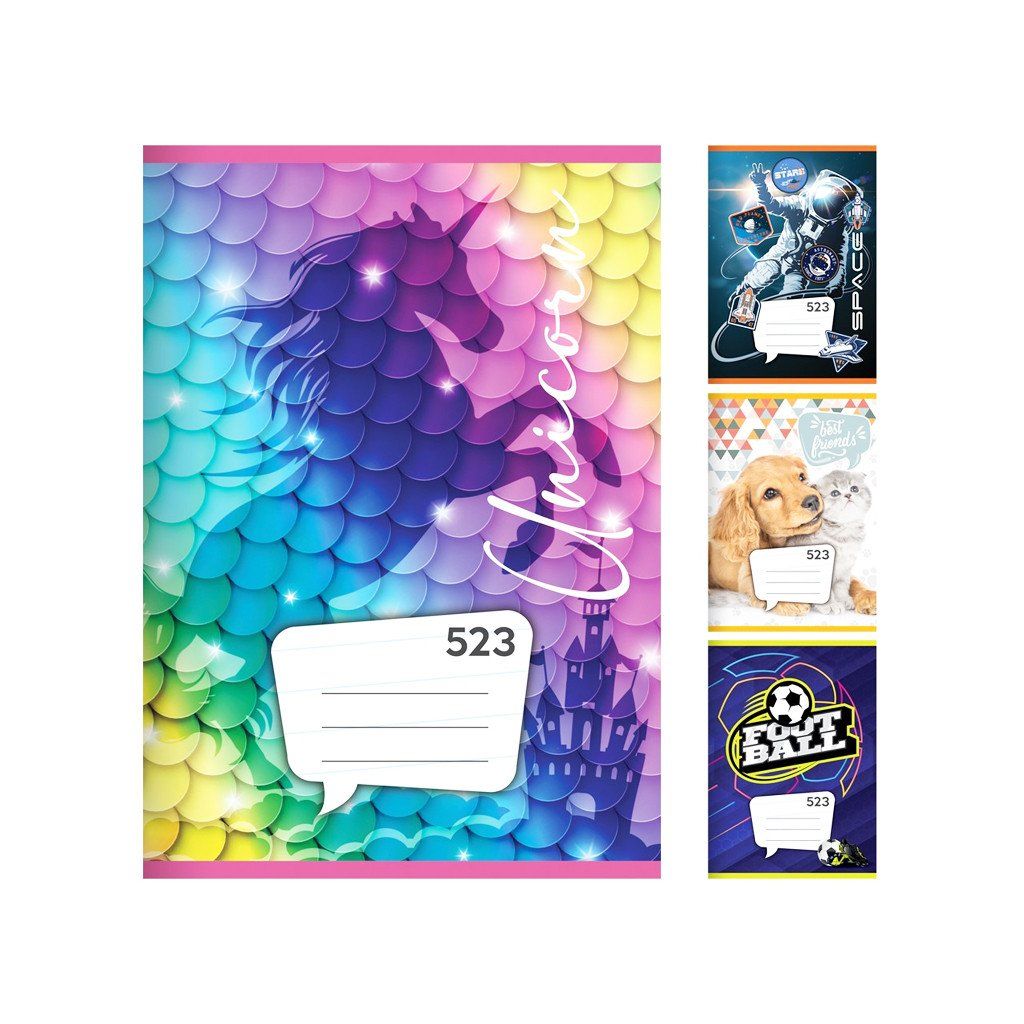 Sešit A5, 20 listový - linkovaný 523, liniatura 12 mm. Na výběr z 20 variant. Balení obsahuje 20 kusů. Cena je za 1 kus.