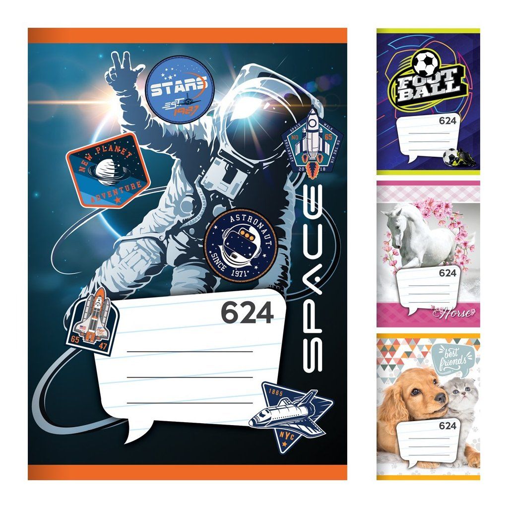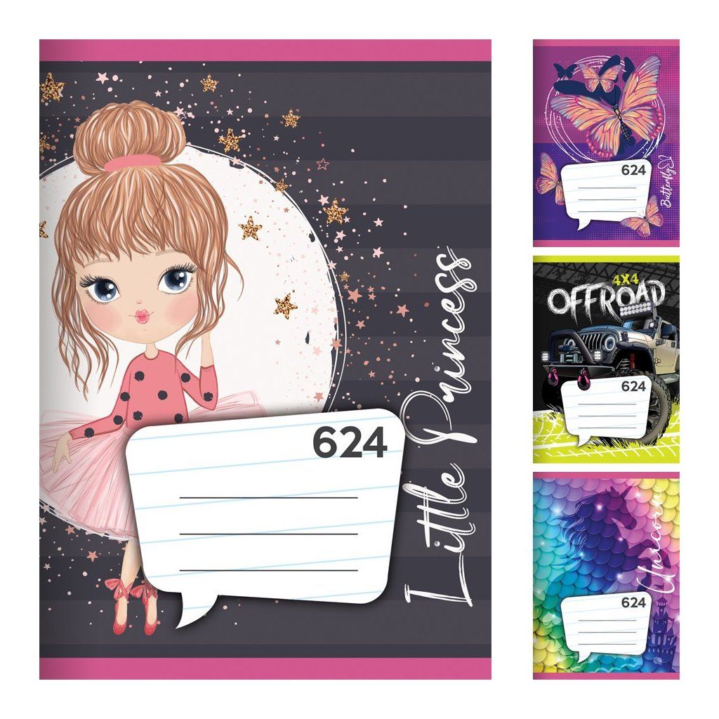 Sešit A6, 20 listový - linkovaný 624, liniatura 8 mm. Na výběr z 20 variant. Balení obsahuje 20 kusů. Cena je za 1 kus.