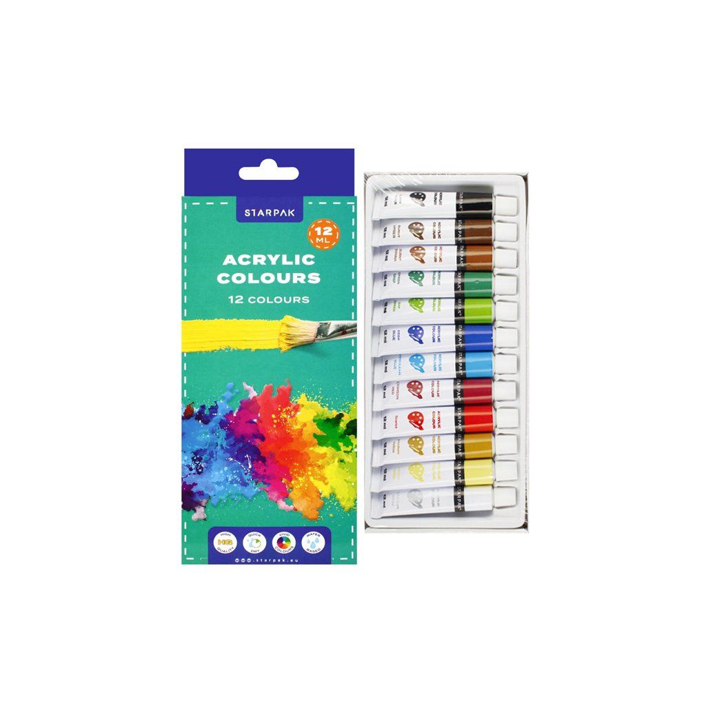 Set akrylové barvy, 12 barev ve 12 ml tubách. Nevhodné pro děti do 3 let.