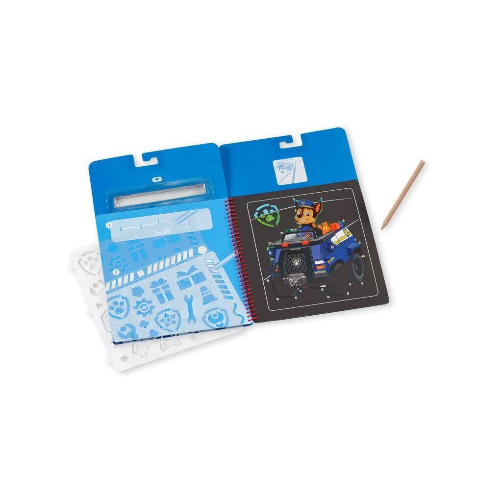 Škrábací obrázky Tlapková patrola Chase, má rozměry 28 x 18 cm. Sada obsahuje 0 škrábacích obrázků s kroužkovou vazbou, dřevěná tužka se špičkou na vyškrabování, šablony na obkreslení a samolepky. Cena je za 1 sadu. Vhodné pro děti 5+.Doplňkové parametry