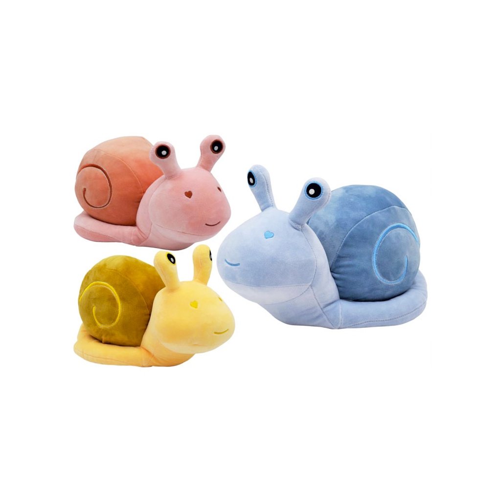 Plyšový hlemýžď s vyšitými očky. Možnost výběru ze tří barev. Rozměr 38x20cm. Cena za kus.