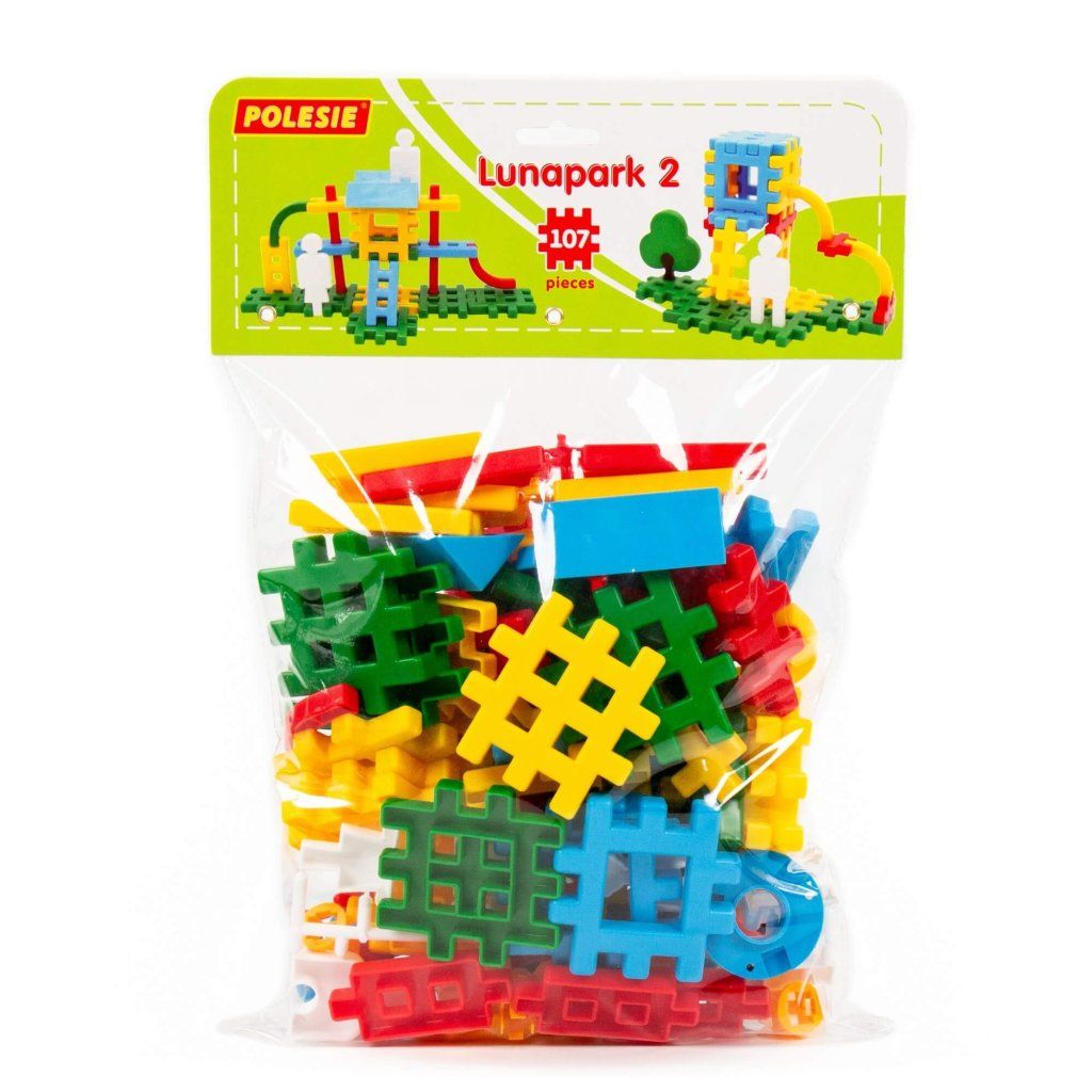 Stavebnice Blok Lunapark 2 sestává ze základních stavebních bloků spojitelných se všemi blokovými stavebnicemi Vista a doplňky pro tvorbu zábavního parku. V balení je celkem 107 částí.