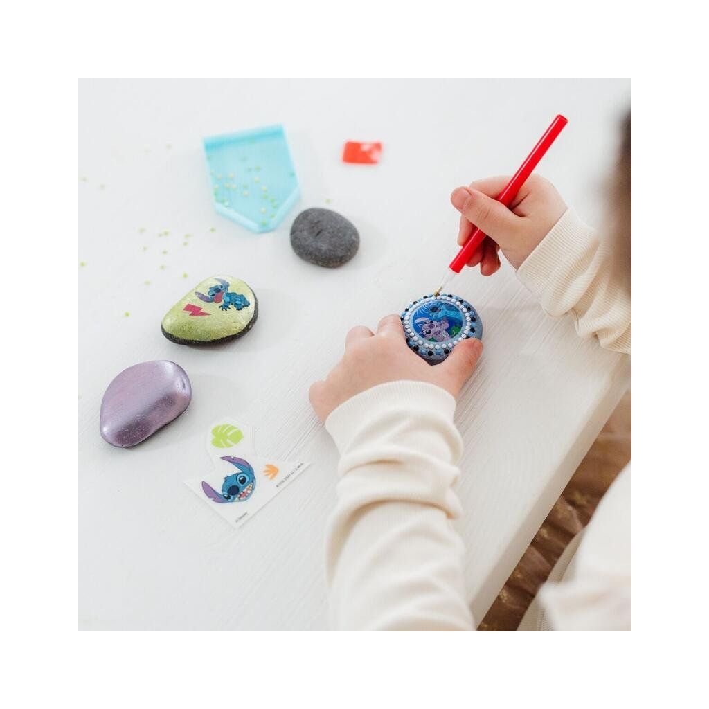 STITCH zdobení kamenù. STITCH - zábavné zdobení kamenů, které zabaví nejen děti, ale i dospělé. Pokud kamínky z balení dojdou, v přírodě jich na vás čeká dost. Vynikající hračka pro rozvoj manuální zručnosti. Vše potřebné k výrobě najdete uvnitř balení. Balení obsahuje: 4 kameny, lepidlo, propisotové samolepky přenáší se protlačením na vybrané místo, špachtle pro přenos samolepek, štětec, lepící čtvereček, cca 400 ks kamínků, třídírna na kamínky, speciální tužku na přenos kamínků a návod k použití. Doporučeno pro děti od 5 let. Rozměr balení: 19,5 x 13 x 3,5 cm.Doplňkové parametry