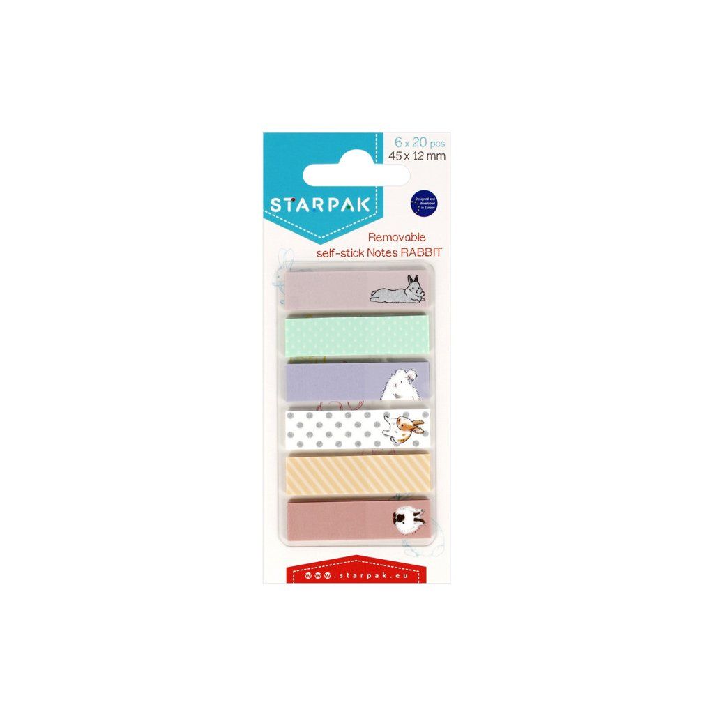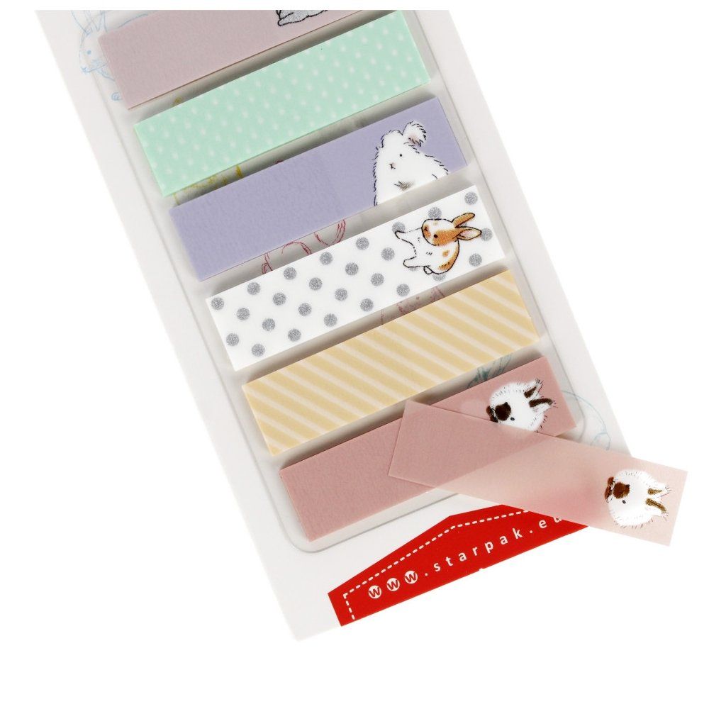 Štítky zajíček. Obsah sady je indexové záložky po 20 listech, v šesti barvách s obrázkem králíka. Rozměry balení jsou 7x15cm. Výrobek je vhodný pro děti ve věku 3+.Doplňkové parametry