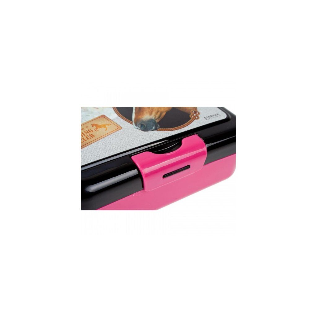 Zajímavé snídaně pro školní a předškolní děti ze sbírky Starpak. Souprava obsahuje 350 ml nápojovou láhev s výtokem, který se snadno otevírá a zavírá pomocí knoflíku, což usnadňuje pití nápoje. Láhev na vodu je na Koně pokryta grafikou. Součástí soupravy je i snídaňová krabice uzavřena západkou. V krabici se snadno umístí sendviče do školy a zdravé občerstvení pro vaše dítě. Viz také další grafické produkty ve společnosti Konie. Plastová krabička a láhev na vodu. Balené ve fólii. Určeno pro děti od 3 let. Rozměry produktu V x Š x H: 18 x 17 x 5.Doplňkové parametry
