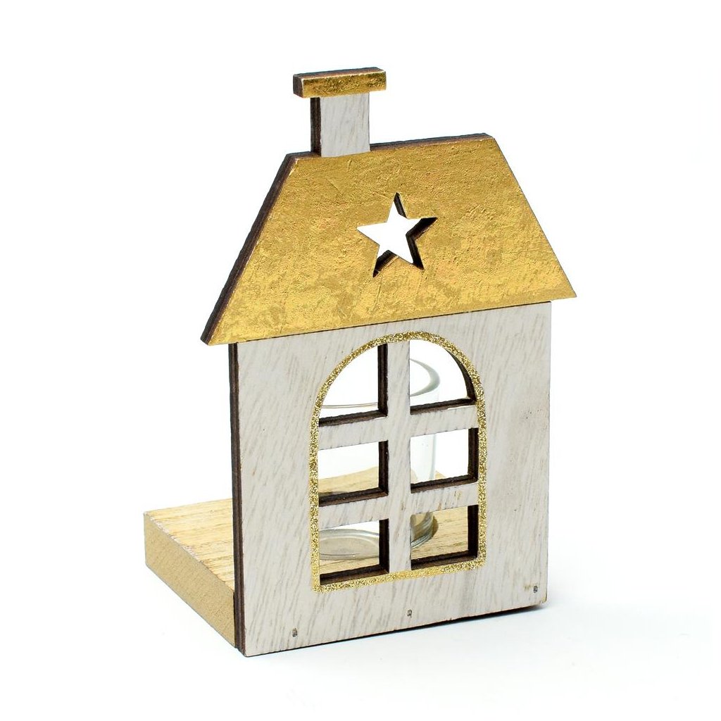 AKCIA! SVIETNIK DOM DREVO ZLATÝ 14x10x7CM