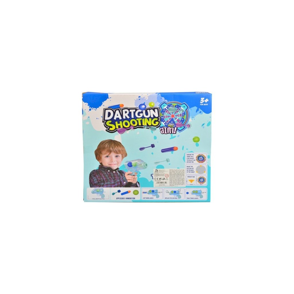 Sada s terčem a příslušenstvím přinese dětem zábavnou hru na přesnost a střelbu. Balení obsahuje dvě pistole a různé druhy nábojů, jako jsou míčky, pěnové střely a šipky bez ostrých hrotů, které jsou navrženy s ohledem na bezpečnost dětí. Terč o průměru přibližně 25 cm lze snadno připevnit pomocí přiložených přísavek a vytvořit si tak vlastní střeleckou hru doma i venku.Doplňkové parametry
