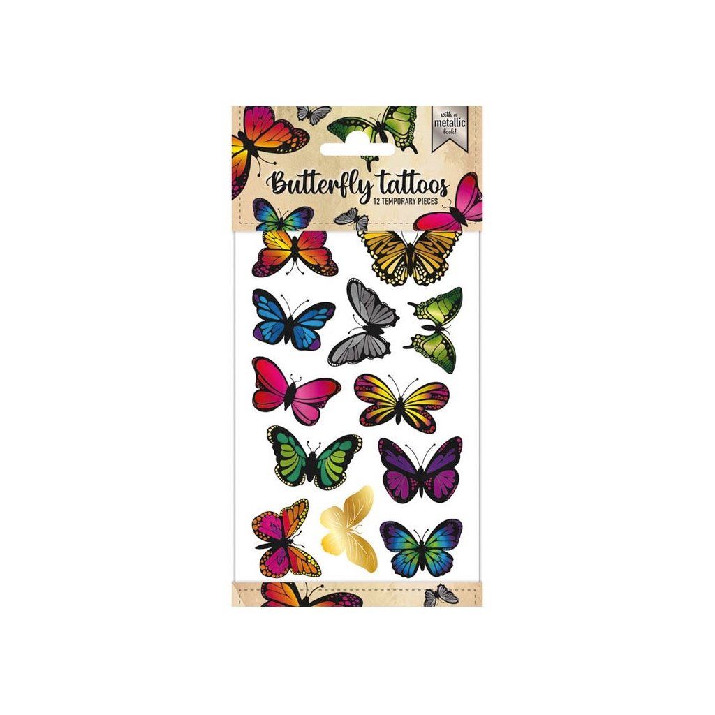 Tetování Motýli, Balení obsahuje: 1 plato o velikosti 200 x 100 mm Doporučený věk od 3 let.