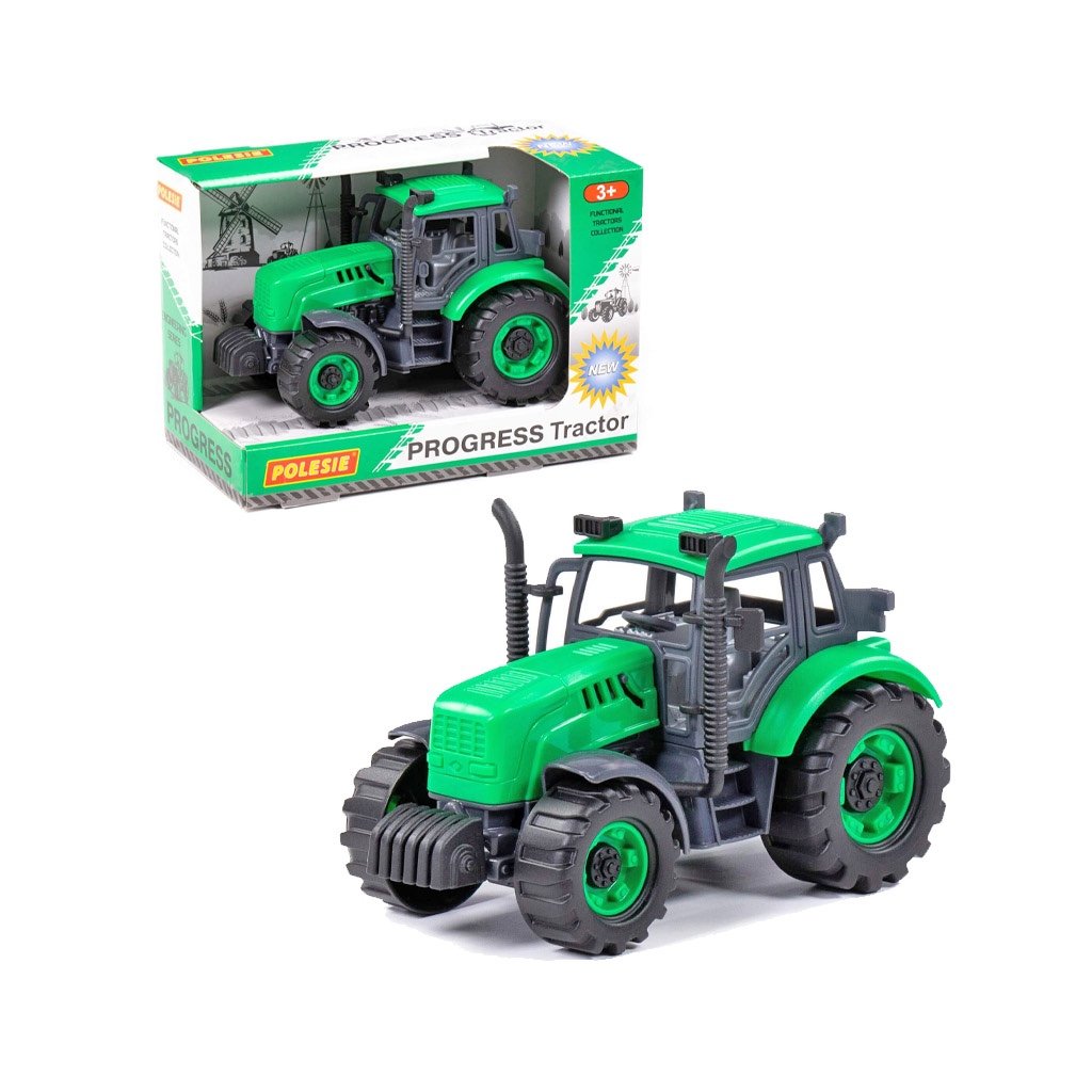 Traktor Progress z továrny Polesie je hračkou skutečného speciálního traktoru. Design traktoru je vyroben co nejpodrobněji, kapotu traktoru lze během hry zaaretovat v otevřené poloze pro opravu. Traktor je vybaven inerciálním mechanismem, který zvyšuje průchodnost na různých površích. Je zábavné hrát si s ním doma i venku. Hračka je dodávána ve světlé krabici.Doplňkové parametry