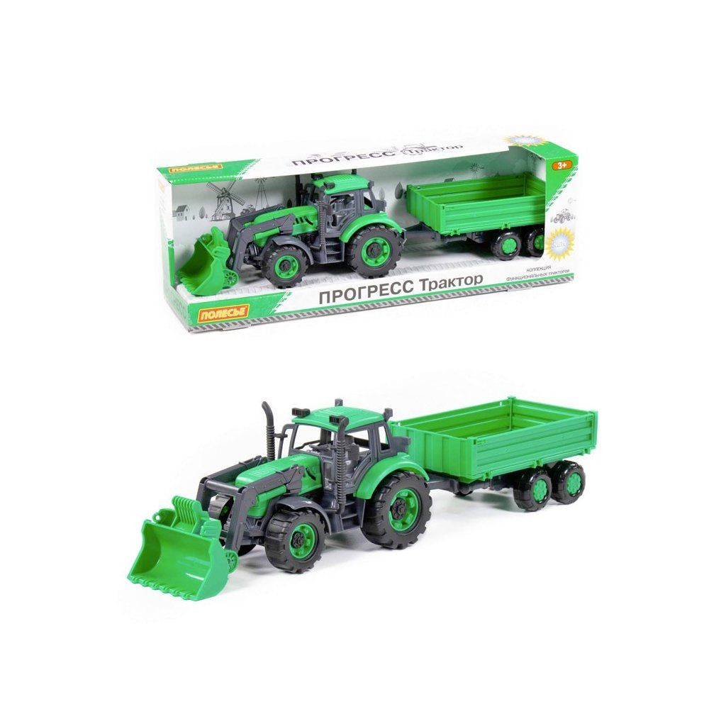 Traktor Progress je hračkářská analogie skutečného speciálního vybavení s maximálními detaily. Kapota traktoru může být uzamčena v otevřené poloze pro fixaci během hry. Traktor je vybaven inerciálním mechanismem, který zvyšuje průchodnost na různých površích. Tento model je vybaven lžící a valníkovým přívěsem, který zpestří scénáře dětských her. Je fascinující komunikovat s ním doma i na čerstvém vzduchu. Prodává se v barevné krabici.Doplňkové parametry