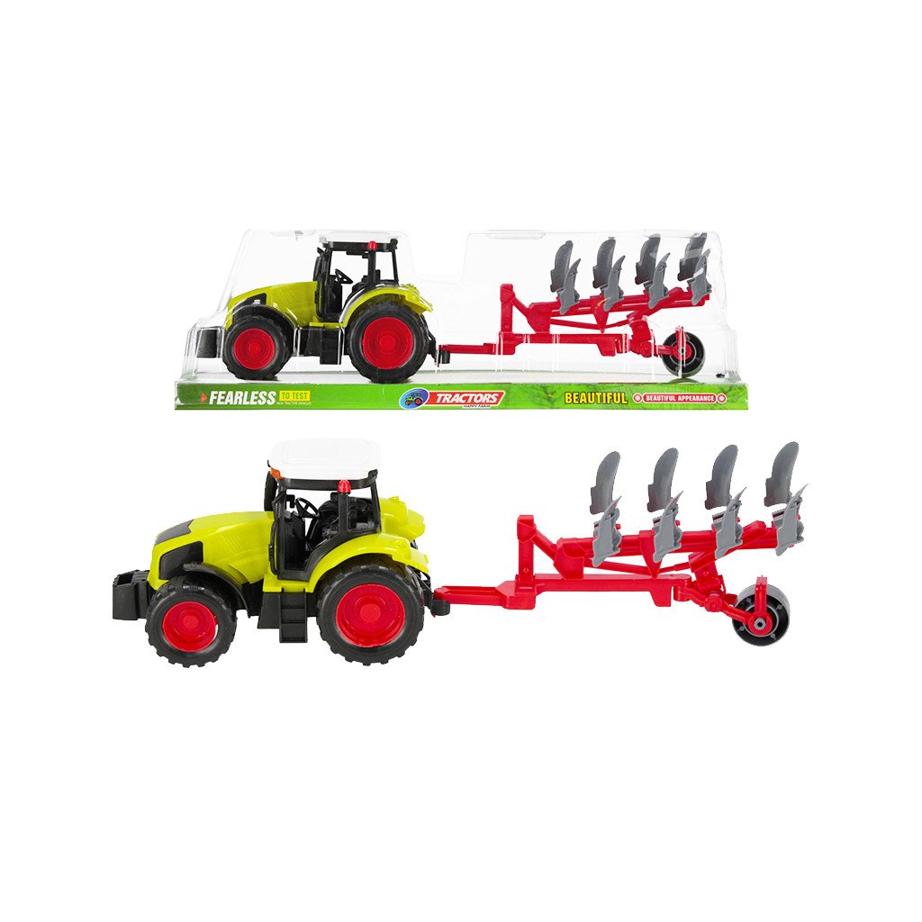 Traktor se zemědělským přívěsem, je ideální hračkou pro malé milovníky zemědělství a vozidel. Má rozměry 40x13x11 cm. Cena je za kus. Vhodné pro děti ve věku 3+ let.Doplňkové parametry