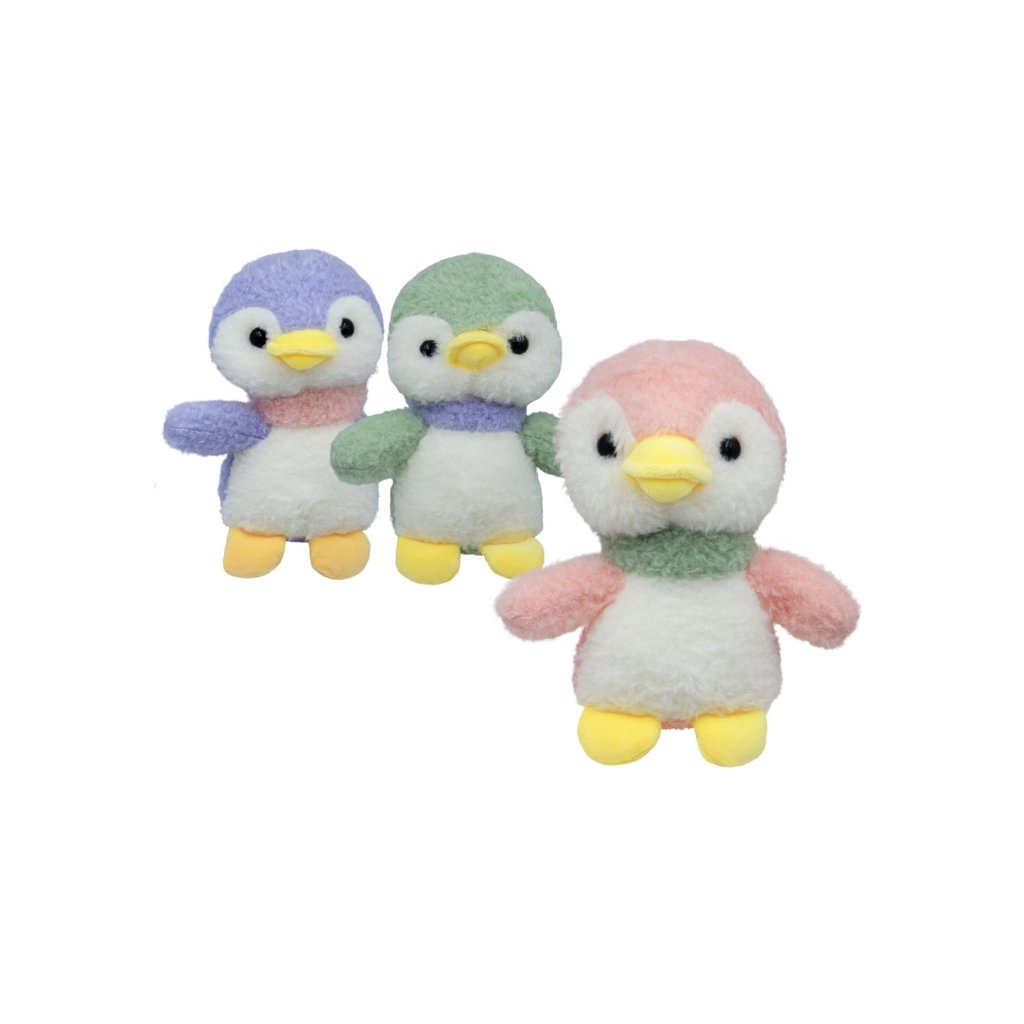 Plyšový 20cm tučňáček. Možnost výběru ze tří barev – růžový, zelený nebo modrý. Příjemný na dotek.