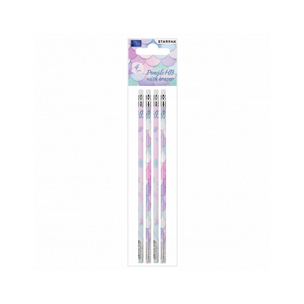 Tužky Mořská panna s gumou, tužka má rozměr 19 cm a tvrdost HB. Balení po 4 ks. Cena je za 1 balení. Vhodné pro děti 3+.Doplňkové parametry