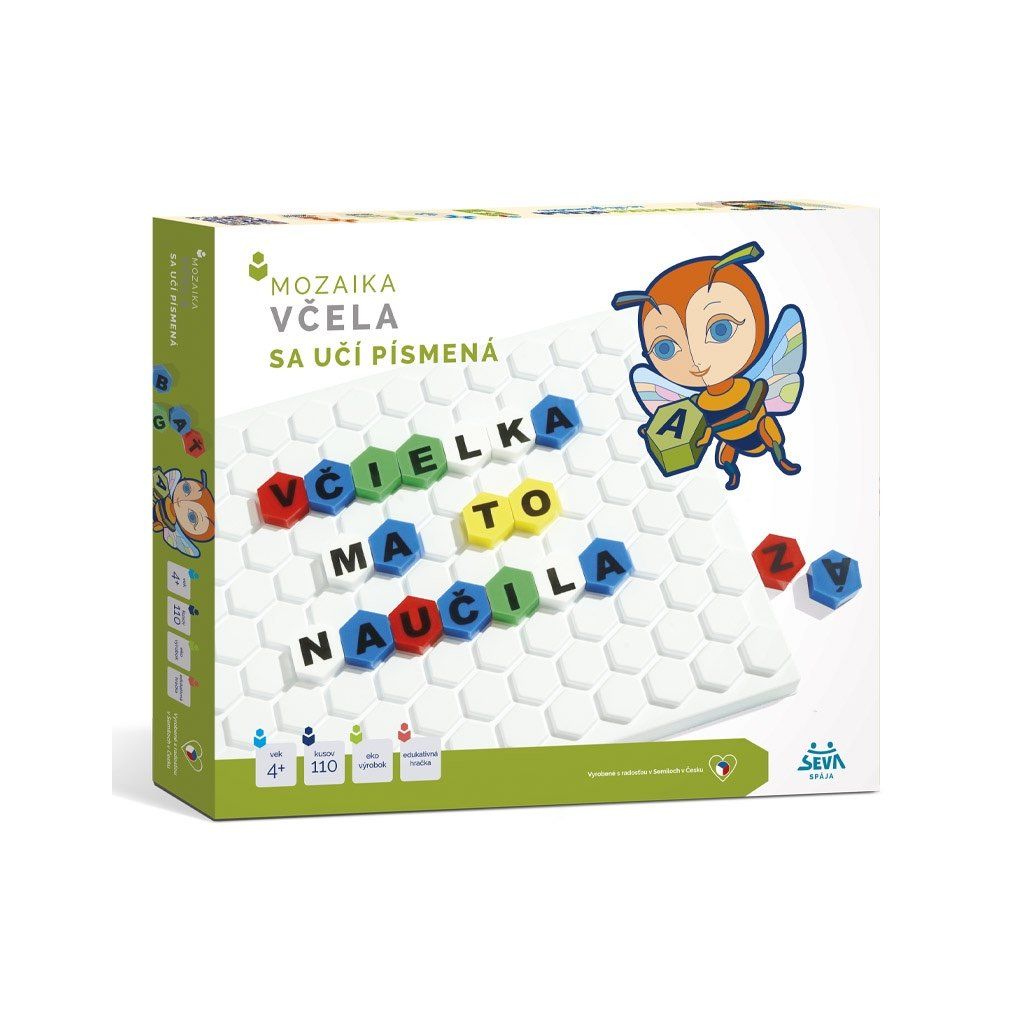 Popis produktu Včela se učí písmenka Stavebnice mozaikového typu Mosaic MAXI je nejen skvělá hračka, ale i výborná vzdělávací pomůcka pro předškoláky. Děti předškolního věku si procvičí nejen svoji motoriku, ale naučí se abecedu MOSAIC MAXI3 nebo základy počítání MOSAIC MAXI2. Základ stavebnice tvoří podložka, která připomíná včelí plástve. Na tuto podložku se skládají různobarevné dílky stavebnice a děti si mohou vytvořit různé obrázky dle své fantazie nebo přiloženého návodu. Všechny stavebnice Mosaic MAXI jsou vzájemně plně kompatibilní, takže ji můžete neustále rozšiřovat a doplňovat o nové dílky.Doplňkové parametry