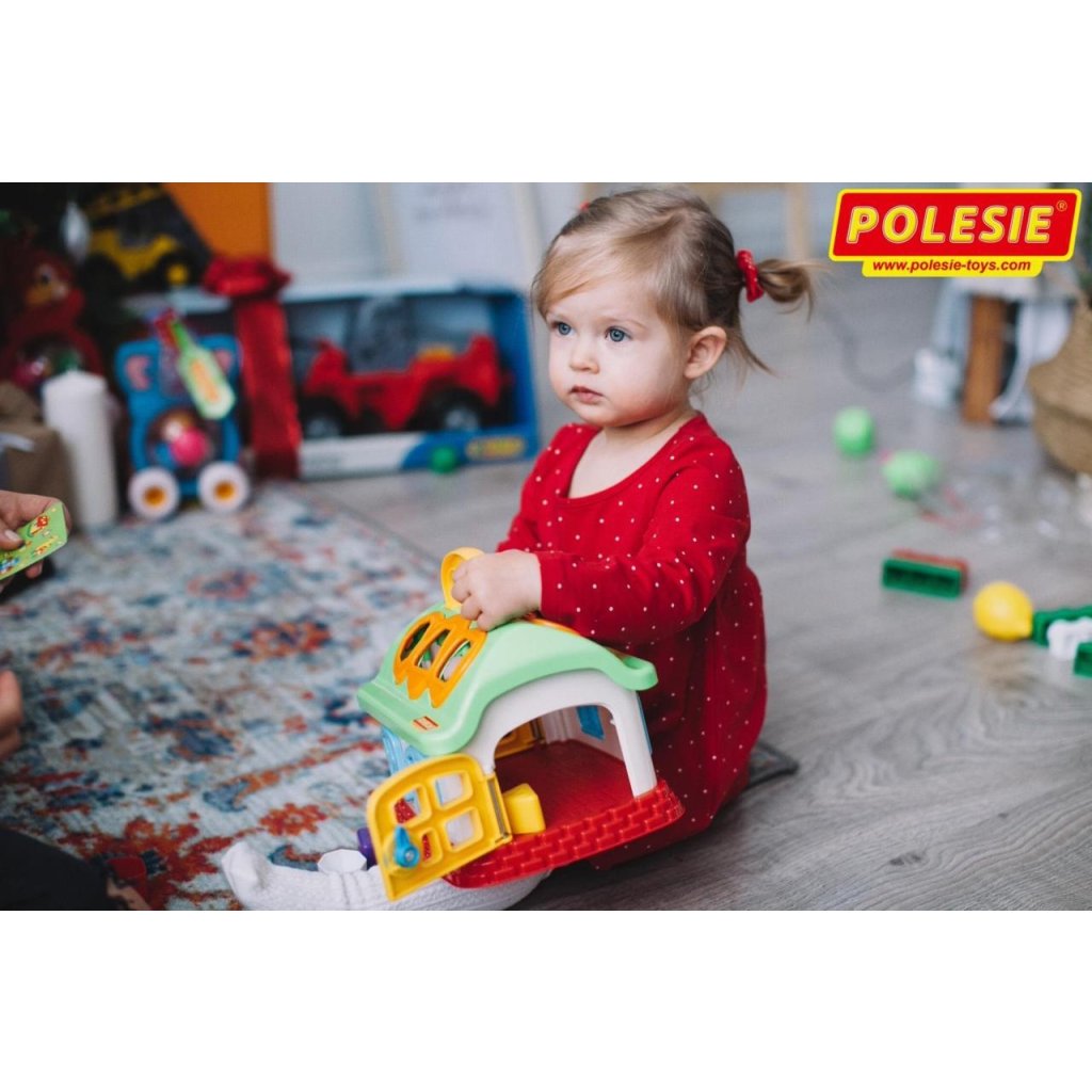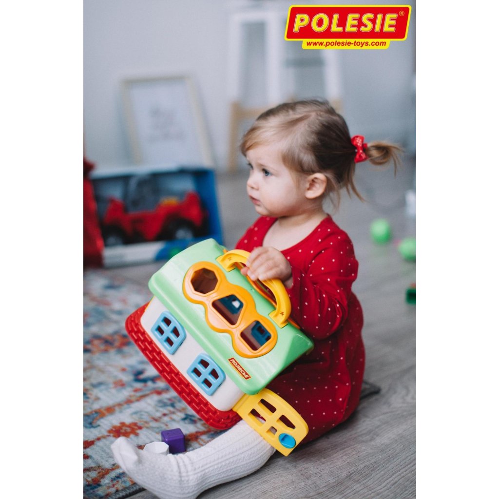 Veselý domeček je 24 x 18 cm velký s výškou 18 cm. Pro dítě má několik benefitů:může ho nosit za praktickou rukojeť, učí se poznávat tvary a barvy, procvičuje jemnou motoriku a dokáže i odemknout dvířka. Hračka je vhodná pro děti od 1 roku.Doplňkové parametry