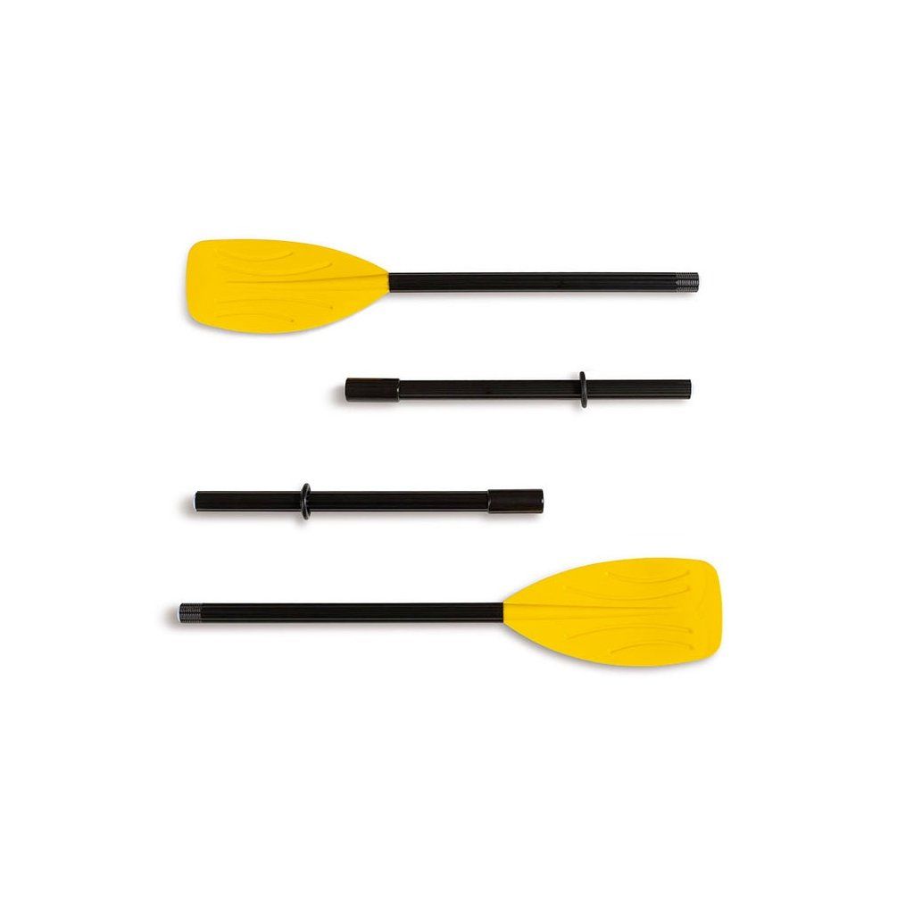 Intex 59623 Vesla 122 cm Skládací vesla vhodné k nafukovacím člunem, lehátkům a k dalším vodním vozidlům. Dvoudílné plastové násady s plastovým pádlem, pevné spoje s dvojitým zajištěním. Sada obsahuje 1 pár vesel. Vhodné pro děti od 3 let Materiál: plast, hliník Hmotnost: 1,1 kg Délka: 122 cmDoplňkové parametry