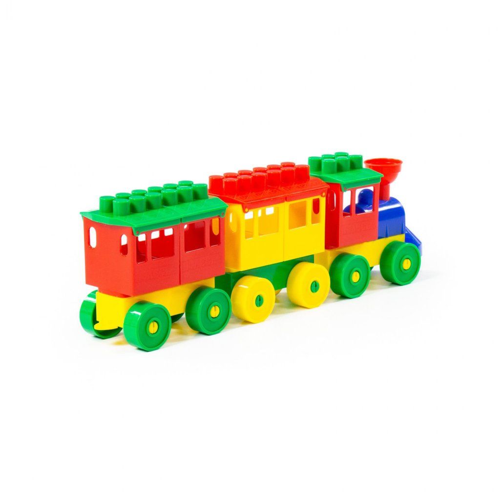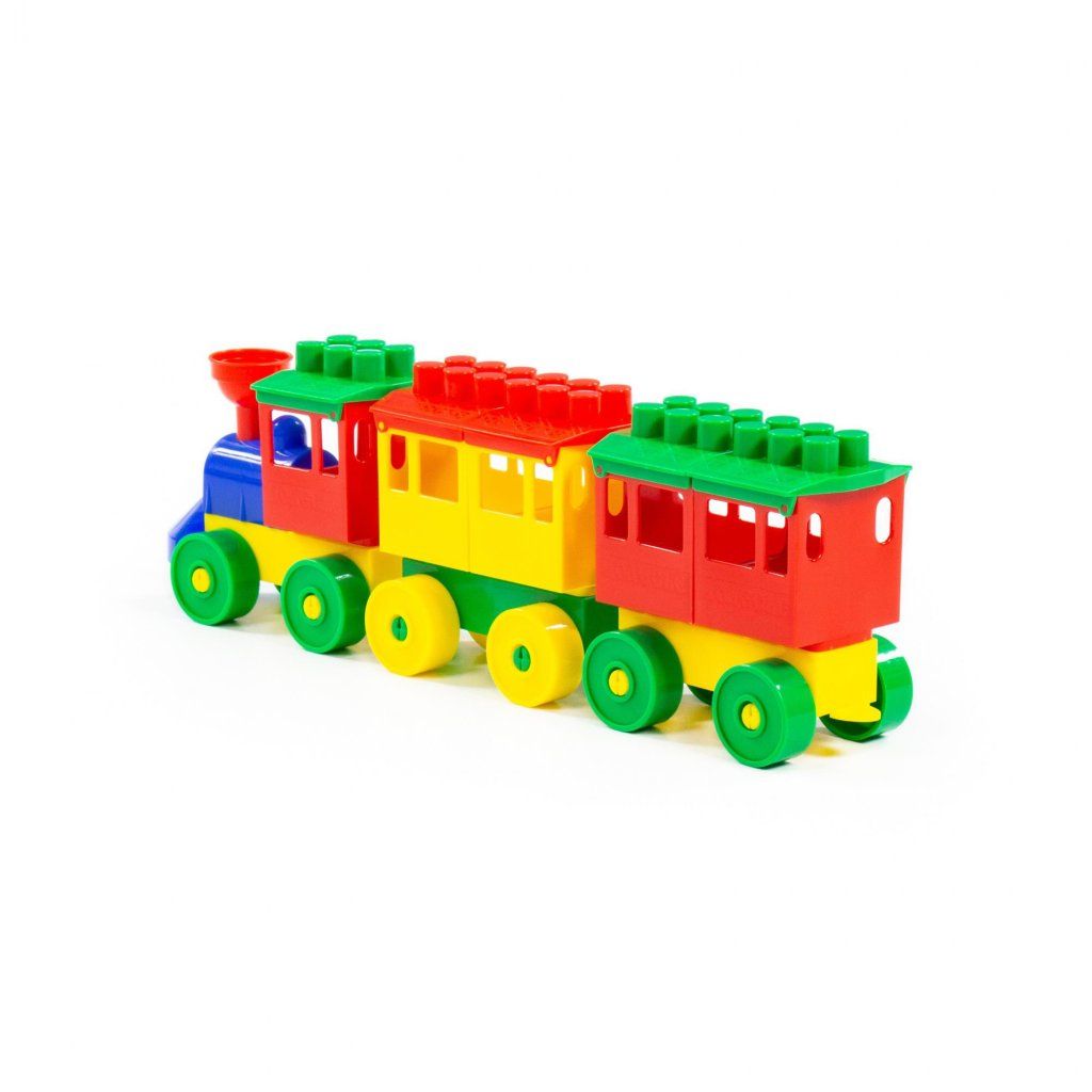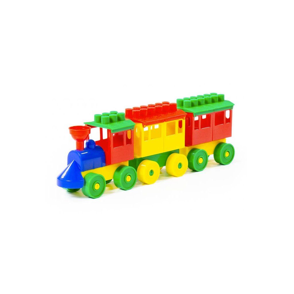 Lokomotiva s dvěma vozy ze systému skládaček Stavitel, s kompaktibilní rozměrem základního dílu 3x3cm. Balení je v síťce.Doplňkové parametry