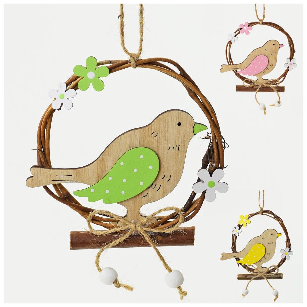 Cena za 1 ks: 25, VTÁČIK DREVO NA PNÍKU ZÁVES MIX 10CM SUPER CENA