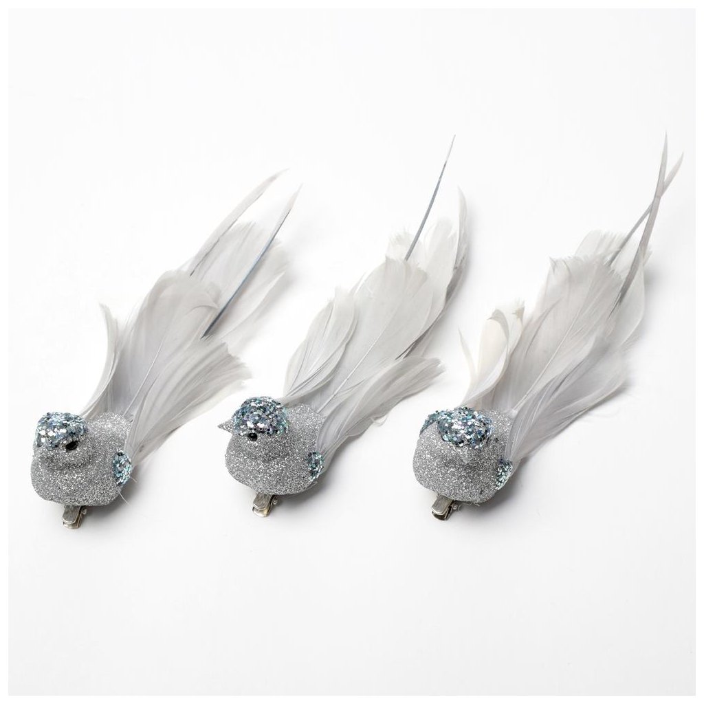 Cena za 1 ks: 36, VTÁČIK NA ŠTIPCI STR/SIV GLITER MIX/3 PERIE S*3 16,5*3,5*4CMDoplňkové parametry