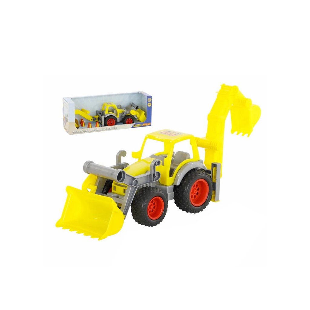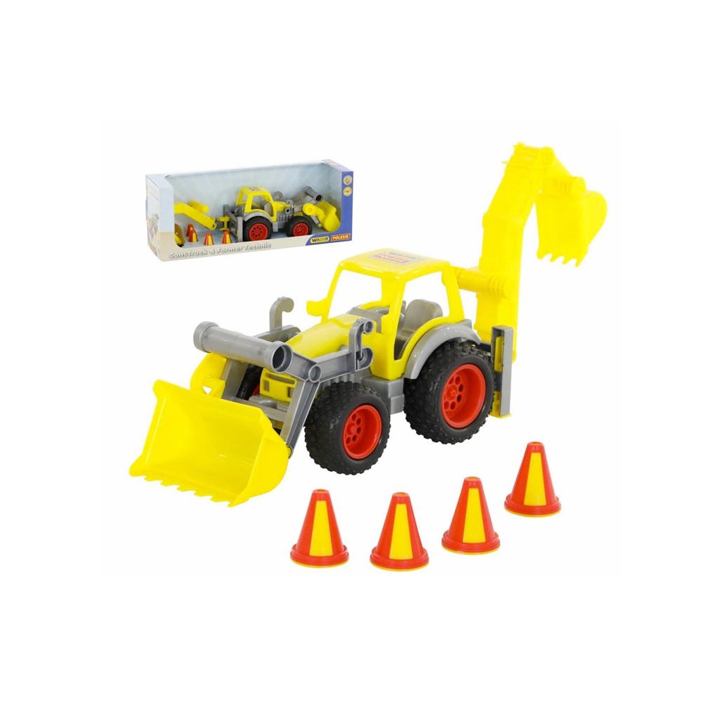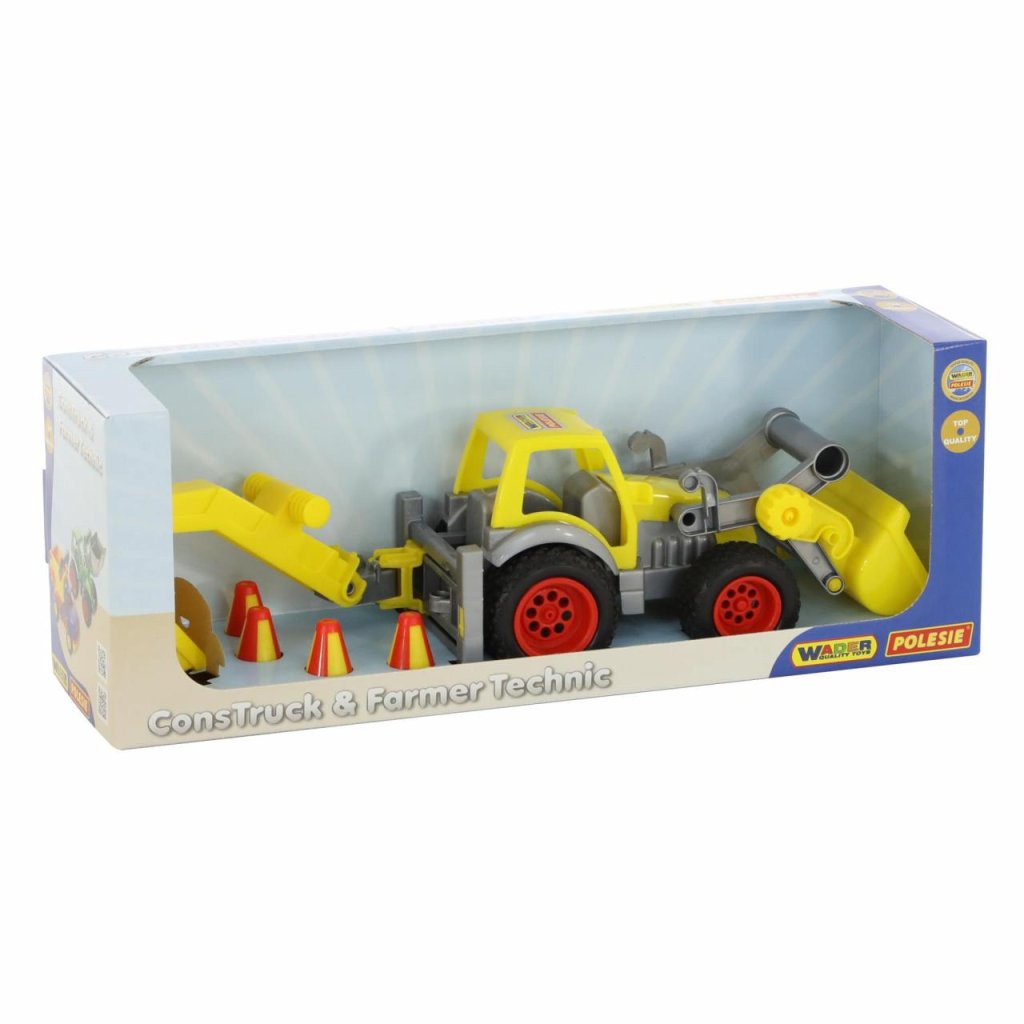 Traktor ConsTruck s pneumatikami, lopatou a rypadlem, všechny části jsou pohyblivé s možností mechanické manipulace. Součástí balení jsou i 4 kužely. Hračka je certifikována pro děti od 1 roku věku od renomované značky Wader quality toys. Barevné kombinace konzultujte dle aktuálního stavu na skladě.Doplňkové parametry
