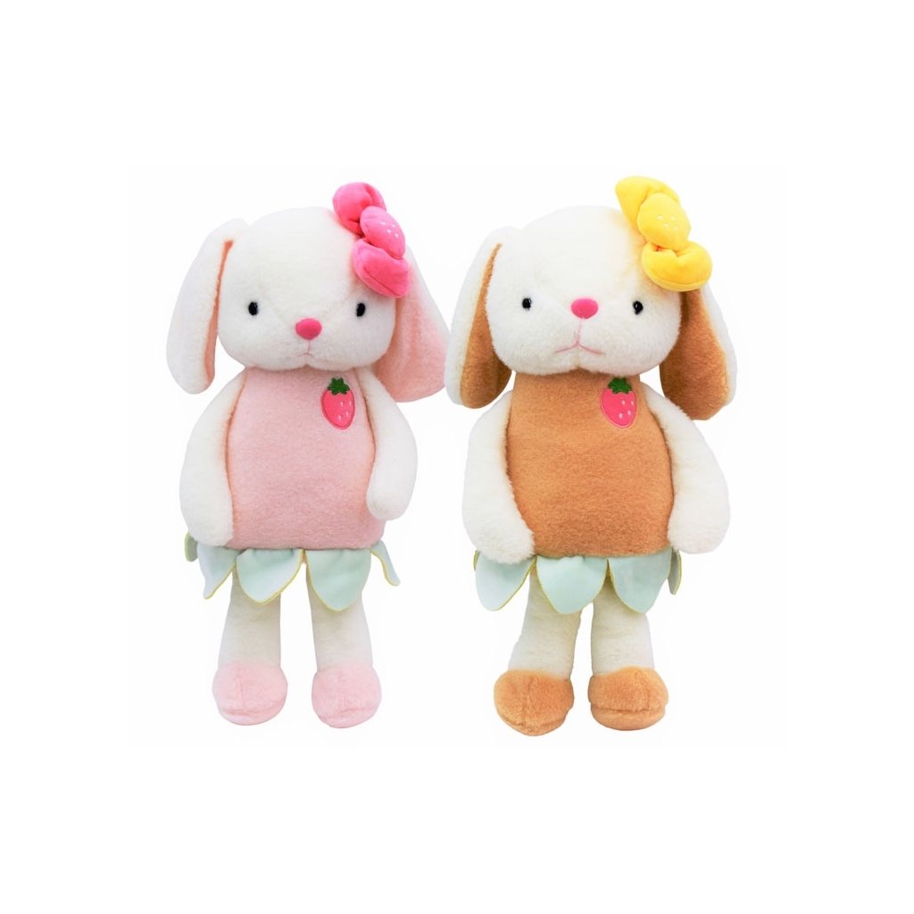 Plyšový zajačik s mašličkou a výšivkou. Možnosť výberu z dvoch farebných prevedení - ružový alebo hnedý.