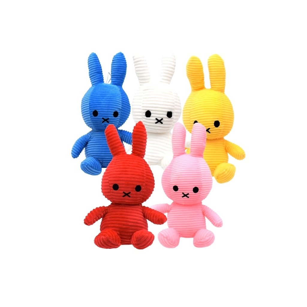 Roztomilý plyšový sedící zajíček s vyšitými očky. Možnost výběru ze šesti barev ? růžový, modrý, bílý, žlutý nebo červený.