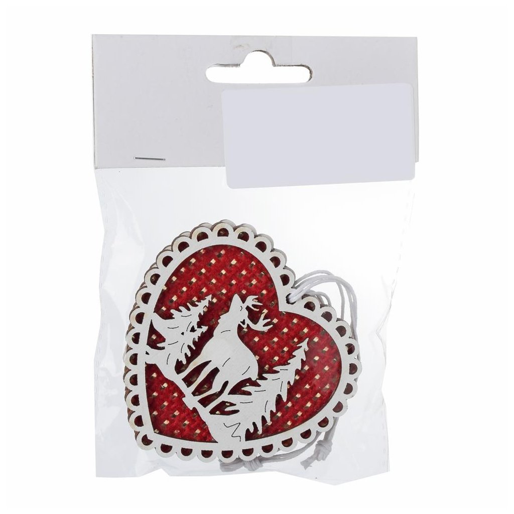 Cena za 1 ks: 37, ZÁVES SRDCE S JELEŇOM V SÁČKU DREVO BIELA S/2 10x13CMDoplňkové parametry