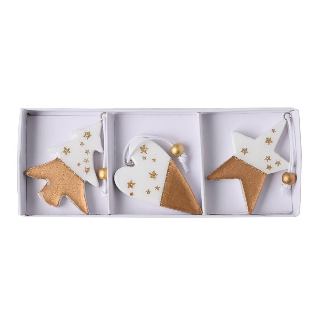 Cena za 1 ks: 83, ZÁVES STROM/HVIEZDA/SRDCE DREVO ZLATÁ BIELA S/3 21x8x2CMDoplňkové parametry