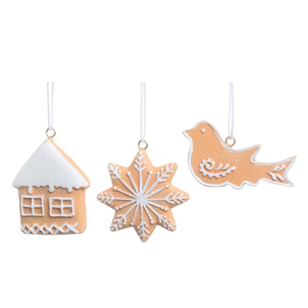Cena za 1 ks: 68, ZÁVESNÉ PERNÍKOVÉ OZDOBY HNEDÉ POLY S/3 4.5*4.5cm
