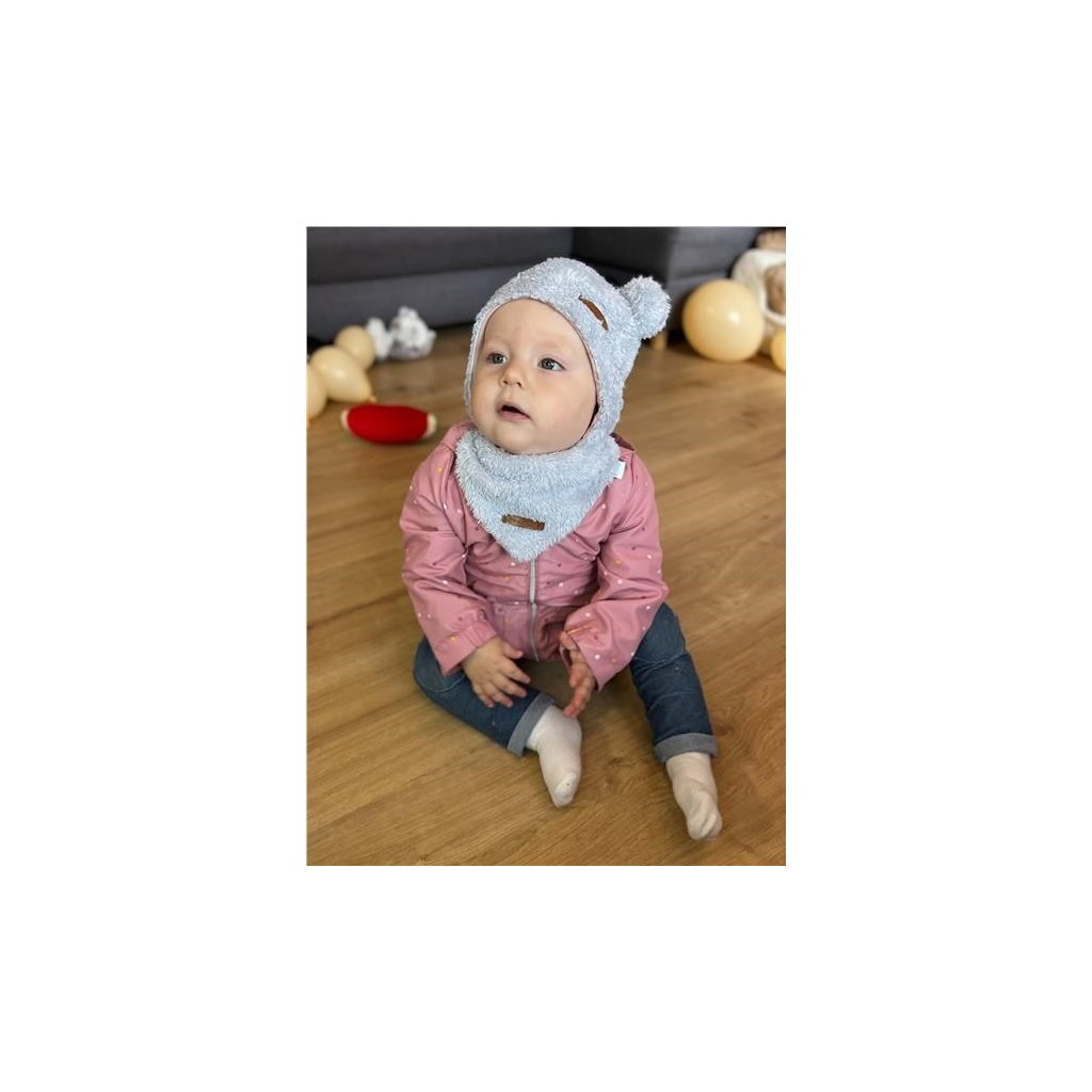 Zimní kojenecká čepička s šátkem na krk New Baby Teddy bear šedo růžová 86 (12-18m)